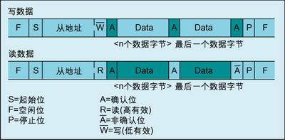 I2C允許多個主器件工作在同一總線上。多個主器件可以輕松同步其時鐘,因此所有主器件均采用同一時鐘進行傳輸。多個主器件可以通過數(shù)據(jù)仲裁檢測哪一個主器件正在使用總線,從而避免數(shù)據(jù)破壞。由于 I2C總線只有兩條導(dǎo)線,因此新從器件只需接入總線即可,而無需附加邏輯。圖4 顯示了典型的 I2C總線讀/寫操作。