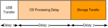 3.延遲Z是指數(shù)據(jù)在USB和存儲設備之間傳輸所需的時間,這取決于請求類型。還取決于直接存儲器存取結構和存儲設備類型,并不取決于USB速度,因為這里瓶頸會是存儲速度而不是USB速度(如SuperSpeed)。延遲Z可能在幾毫秒和數(shù)微秒之間,取決于存儲設備類型和數(shù)據(jù)大小。