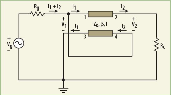 這里:Rg=源阻抗、Rc=負(fù)載阻抗、Zo=傳輸線特性阻抗、βl=相位因子、l=kλ=傳輸線長(zhǎng)度(這里λ是波長(zhǎng),k是小數(shù)值)。