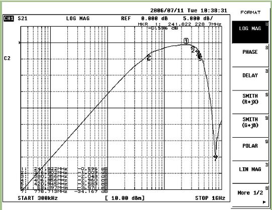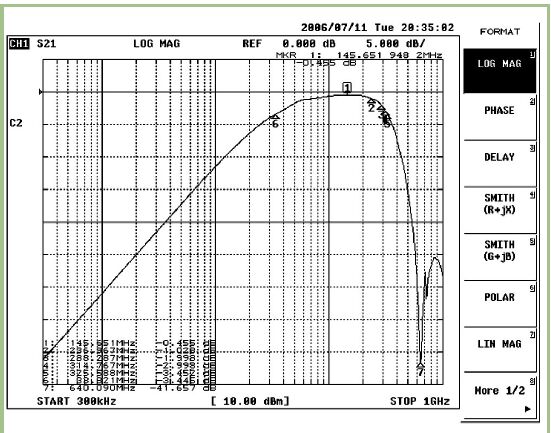 盡管三組結(jié)果是由不同的方法求出的,但它們彼此吻合良好。分析(MATLAB)和數(shù)值(ADS)模型獲得的響應(yīng)與實(shí)驗(yàn)獲得的響應(yīng)(VNA測(cè)量值)比較起來(lái)十分接近。利用分析和數(shù)值方法獲得的值近似相等,但與實(shí)驗(yàn)結(jié)果相比有少許差異。最好的解釋是,理論模型沒有把變壓器結(jié)構(gòu)中所采用的各元件的復(fù)雜特性完全考慮在內(nèi),而是按照幾乎“理想”的元件來(lái)建模的。