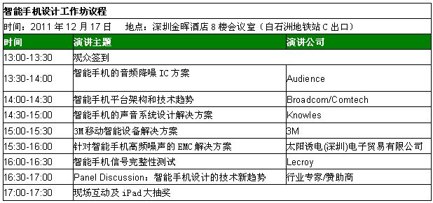 - 首屆智能手機設(shè)計工作坊將與12月17日召開