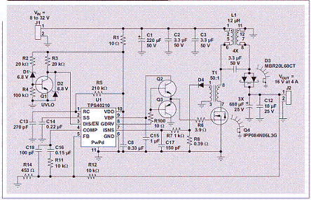 圖 2 使用耦合電感的 SEPIC(4A 時(shí) 16V)