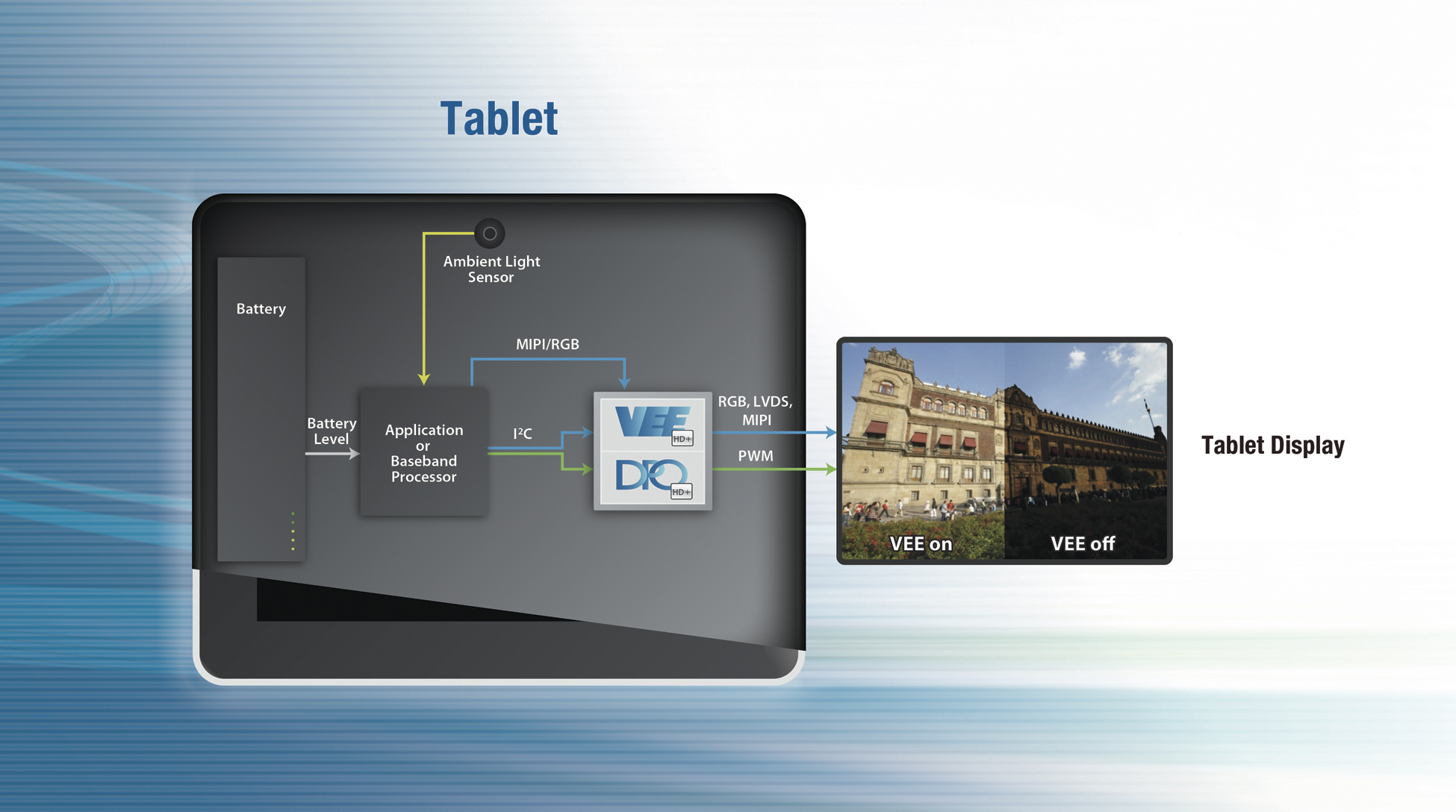 ArcticLink III VX系列與現有的獨立連接解決方案不同,它可以在陽光下提高顯示屏的可視性,并且把電池壽命延長了 50%。QuickLogic的VEE HD +技術是基于人類視覺模型,大大地優(yōu)化了顯示內容的動態(tài)范圍,對比度和色彩飽和度,無論在甚樣的觀看環(huán)境中,用戶都會感到視覺效果是自然的。 QuickLogic的DPO HD +技術與VEE HD+技術一起,根據環(huán)境亮度和內容來調節(jié)顯示屏亮度,延長了電池的壽命,沒有對用戶的體驗產生不利的影響。