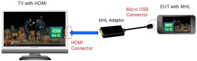 這次,我們將使用實際配備了MHL的便攜式終端 (以下簡稱EUT) ,通過觀察MHL信號線產(chǎn)生的輻射噪聲和傳輸?shù)牟ㄐ钨|(zhì)量,來共同見證共模扼流線圈的高效性能。