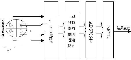 信號(hào)通過(guò)放大和調(diào)理后由由A/D轉(zhuǎn)換器(本系統(tǒng)中采用ADS7864)采樣轉(zhuǎn)換成數(shù)字量送入單片機(jī),由單片機(jī)處理后得到目標(biāo)的方位,并根據(jù)實(shí)際系統(tǒng)的需要輸出方位控制指令。