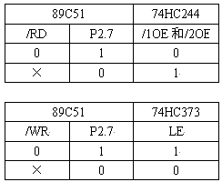 系統(tǒng)采用89C51的P2.7尋址ADS7864,地址為8000H,同時(shí)用這個(gè)地址信號(hào)配合89C51的/WR和/RD信號(hào)作74HC244和74HC373的使能信號(hào)。要求當(dāng)89C51的/RD=0,P2.7=1時(shí)才開(kāi)啟74HC244,讀取ADS7864的轉(zhuǎn)換結(jié)果;當(dāng)89C51的/WR=0,P2.7=1時(shí)74HC373才鎖存89C51 P0口上的數(shù)據(jù)信號(hào),實(shí)現(xiàn)往ADS7864的控制端寫數(shù)據(jù),其它時(shí)候74HC244和74HC373都是關(guān)閉的,這樣避免了89C51 P0口上的其它信號(hào)對(duì)ADS7864的干擾。采用鎖存器74HC373來(lái)連接89C51和ADS7864的原因是為了在ADS7864轉(zhuǎn)換數(shù)據(jù)的時(shí)候保持/HOLDA~/HOLDC、A0~A2端的電平保持不變,免得影響ADS7864轉(zhuǎn)換數(shù)據(jù)的精度。74HC244和74HC373的使能信號(hào)真值表如下: