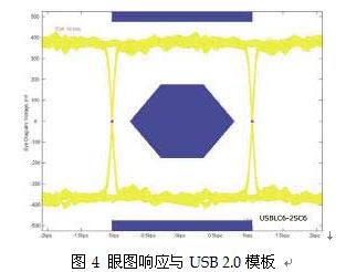 還有一種方法可以檢查這個軌對軌保護元器件對USB協(xié)議正常工作模式的影響,就是通過圖4的眼圖響應來分析信號數(shù)據(jù)位的完整性。