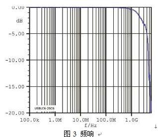 圖3中截止頻率大約為5GHz,遠離USB 480Mb/s收發(fā)器的正常工作頻率,因此,USB收發(fā)器可以安全工作。
