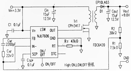 最近廠家生產(chǎn)出了帶負(fù)載切斷功能的升壓型變換器IC,使用時(shí)采用圖1所示的電路。在待機(jī)時(shí)借助于P溝道MOSFET Tr2的截止,切斷輸入端和輸出端的直流通路。