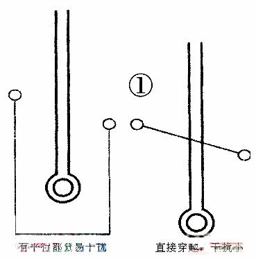 通常低電平、高阻抗端導(dǎo)線容易受干擾,布線時(shí)應(yīng)越短越好:輸入、輸出端用的導(dǎo)線應(yīng)盡量避免相鄰平行,最好加線間地線,以免發(fā)生反饋耦合。平行線效應(yīng)與長度成正比,按信號去向順序布線,忌迂回穿插。遠(yuǎn)離干擾源,盡量遠(yuǎn)離電源線,高電平導(dǎo)線:實(shí)在躲不開干擾源時(shí),不能與之平行走線,雙面板交又通過,單面板飛線過渡。如圖1所示。