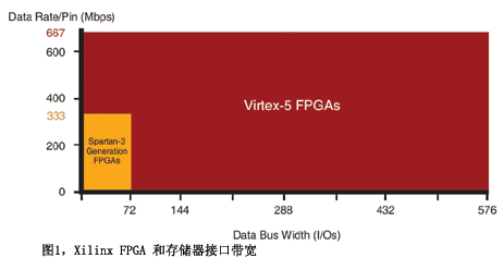 對于將存儲器接口帶寬推至極限的應用,如每引腳 667 Mbps 的 DDR2 SDRAM,Xilinx 提供了 Virtex-5 FPGA。