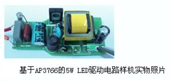 1. 基于最新的LED專用驅(qū)動芯片AP3766,采用原邊控制方式,無須光耦和副邊電流控制電路,實現(xiàn)隔離恒流輸出,電路結(jié)構(gòu)簡單。通過電阻R5檢測原邊電 流,控制原邊電流峰值恒定,同時控制開關(guān)占空比,保持輸出二極管D1的導(dǎo)通時間和整個開關(guān)周期時間比例恒定,實現(xiàn)了輸出電流的恒定。