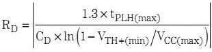 當總線電壓變?yōu)檎╒Bus > 200 mV)時,RX1 輸出變?yōu)楦?,其?qū)動 DR2 輸出為高,并通過 RD 對 CD 緩慢充電。必須正確計算最小時間常量(RD × CD),以使最大電源電壓 VCC(max) 和最小正反相器輸入閾值VTH+(min) 時,延遲時間tD 超過驅(qū)動器最大低到高傳播延遲 tPLH(max),即超出 30%。例如,電容為 CD = 100 Pf 時,RD 的要求電阻值為: