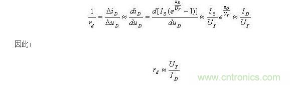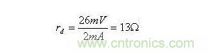 ID為靜態(tài)電流,常溫下UT=26mV??芍?,靜態(tài)電流ID越大,rd將越小。設(shè)UD=0.7V時,ID=2mA。由此可得直流電阻RD=350,而動態(tài)電阻(交流電阻)為: