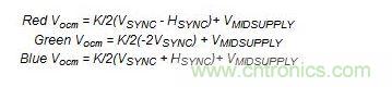 AD8147根據(jù)以下公式提供額外的特性,以編碼TTL邏輯電平、三路輸出共模電壓(VOCM)上的水平和垂直同步脈沖信號: