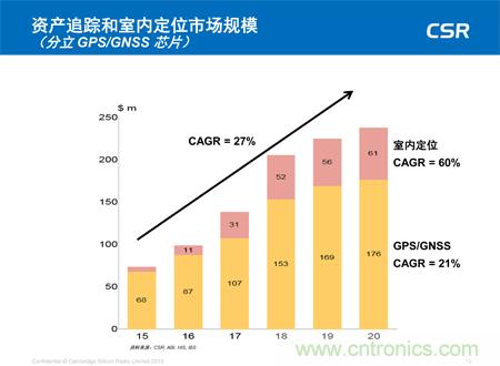 資產(chǎn)追蹤和室內(nèi)定位市場(chǎng)規(guī)模(分立 GPS/GNSS 芯片)