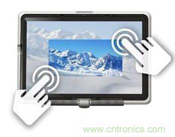 觸摸屏的功能發(fā)展由簡(jiǎn)及繁,最初的產(chǎn)品只支持最簡(jiǎn)單的操[LU4]控,就是一個(gè)手指觸摸屏幕上的一點(diǎn)來(lái)實(shí)現(xiàn)操控。比如我們每天在附件超市的POS終端機(jī),或者在機(jī)場(chǎng)的check-in終端上進(jìn)行的操作。以前,我們只能通過屏幕周邊的機(jī)械按鈕進(jìn)行操控,單點(diǎn)觸摸屏在此基礎(chǔ)上實(shí)現(xiàn)了用戶界面方面的一大進(jìn)步。當(dāng)然,機(jī)械和新型電容式觸摸感應(yīng)按鈕在我們的家庭、辦公室及其他地方無(wú)所不在:手機(jī)、固定電話、遙控器、電視、電腦及其各種外設(shè)、游戲機(jī)、電冰箱、微波爐、烤箱,以及無(wú)線電和空調(diào)等車內(nèi)電子控制設(shè)備等等?,F(xiàn)在,如下列圖1所示的單點(diǎn)觸摸屏在顯示屏上直接集成了用戶控制界面,因此再也不需要傳統(tǒng)的機(jī)械按鈕了。