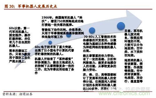 【導(dǎo)讀】隨著中國(guó)人口紅利消失,機(jī)器人不僅在制造業(yè)上正在替代工人,還將在軍事、服務(wù)、娛樂等領(lǐng)域取代人類,“鋼鐵俠”已不僅僅存在于美國(guó)科幻電影中,而正走入我們的生活。本篇報(bào)告對(duì)機(jī)器人行業(yè)及龍頭上市公司進(jìn)行分析,對(duì)比日本、美國(guó)、德國(guó)機(jī)器人行業(yè)技術(shù)路線、發(fā)展路徑、下游市場(chǎng)分布,對(duì)國(guó)內(nèi)機(jī)器人行業(yè)發(fā)展方向和空間進(jìn)行預(yù)測(cè),挖掘中國(guó)股市的tenbager。一起跟隨我愛方案網(wǎng)小編瞧瞧吧(做好準(zhǔn)備,很長(zhǎng)的喔)!