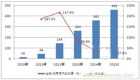 圖表1: 2010-2015年全球商用LTE網(wǎng)絡(luò)部署數(shù)量