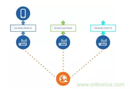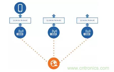 我們可以試想一下,當(dāng)我們每天搭乘公共交通穿行了整個城市,當(dāng)我們在商場購物或是和朋友在餐廳聚餐的時候,你的智能手機可以幫助你付費、點單和導(dǎo)航。如果你的智能手機接入到網(wǎng)絡(luò)熱點當(dāng)中進行互聯(lián)網(wǎng)訪問的時候,它就可能會在這一系列的過程當(dāng)中來廣播其MAC地址。我們前面提到了MAC地址在網(wǎng)絡(luò)通信當(dāng)中的唯一性,你又是智能手機的使用者,那么這部智能手機的MAC地址從某一角度來講,就代表了你在無線通信過程當(dāng)中的身份認(rèn)證。因此就存在這樣一種可能,一些懷有惡意的人通過一些其他的無線通信設(shè)備,可以獲取你的智能手機進行數(shù)據(jù)交互時的MAC地址并且記錄了MAC地址出現(xiàn)的日期、時間和相關(guān)的位置,那么你的行蹤就可以被監(jiān)控,如下圖所示。