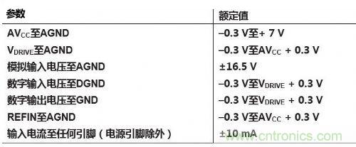 過沖和欠沖可能損壞輸入保護(hù)電路,或者縮短IC的使用壽命。圖6所示為AD7606的絕對最大額定值。數(shù)字輸入電壓應(yīng)在–0.3 V和VDRIVE + 0.3 V之間。另外,如果振鈴高于最大VIL或小于最小VIH可能導(dǎo)致邏輯誤差。