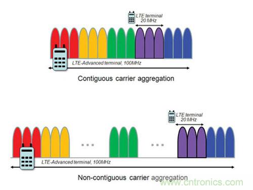 運營商目前處于載波聚合(CA)技術(shù)部署初期,這是LTE Advanced標準(3GPP Release 10)的一個特性。借助CA,運營商可以提高數(shù)據(jù)容量和吞吐量,其方式是把最多五個分量載波(每個載波在 1.4-20MHz之間)組合成最高達100MHz的總帶寬。