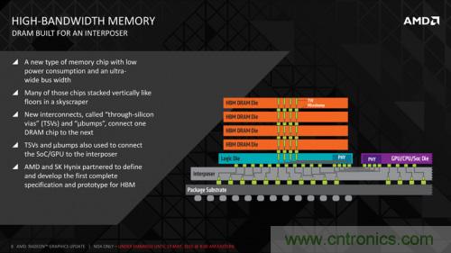 有了先進(jìn)工藝的采用,雖然我們只得到很少的信息,但可以確定Nvidia和AMD的最新架構(gòu)將在所有的在圖形處理中實(shí)現(xiàn)全新的內(nèi)核邏輯。兩種架構(gòu)都將實(shí)現(xiàn)高帶寬的存儲(chǔ),并集成在GPU封裝中,如下圖所示。