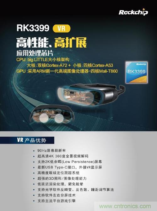 據(jù)了解,目前瑞芯微Rockchip旗下主流芯片RK3288,應用于VR產(chǎn)品,已經(jīng)具備其曝光的所有技術優(yōu)勢。已在VR產(chǎn)業(yè)鏈頗具建樹,在2016年的CES展及本次香港展,多家品牌終端廠商采用了該入門級VR方案并進行了展示。而最新發(fā)布的RK3399處理器,更定于中高端VR產(chǎn)品線,在硬件配置上提升巨大。