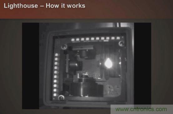 傳統(tǒng)的光學(xué)系統(tǒng)是攝像頭式的,攝像頭跟蹤頭顯上標(biāo)記的馬克點(diǎn)實(shí)現(xiàn)跟蹤,Oculus的Constellation系統(tǒng)就使用了攝像頭+紅外主動(dòng)馬克點(diǎn)的方式;而HTCVive則使用了一套十分巧妙的技術(shù),稱之為L(zhǎng)ighthouse,這套技術(shù)由Valve開發(fā),可以說是目前體驗(yàn)最好的VR光學(xué)跟蹤方案。