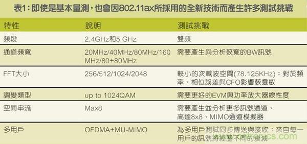 表1:即使是基本量測,也會因802.11ax所采用的全新技術(shù)而產(chǎn)生許多測試挑戰(zhàn)