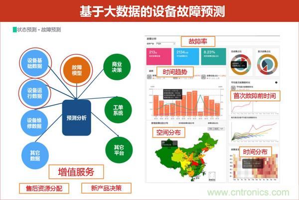 舉例而言,設(shè)備故障預(yù)判是智能電器最基本的一項(xiàng)智慧化服務(wù),它通過云端預(yù)置的故障模型,分析所采集到的家電基礎(chǔ)數(shù)據(jù)與實(shí)時(shí)運(yùn)行數(shù)據(jù),從而為消費(fèi)者提供一些增值服務(wù),如上門清洗維護(hù)、故障報(bào)警、上門維修等,同時(shí)幫助企業(yè)進(jìn)行決策分析,如售后資源分配、下一代產(chǎn)品的優(yōu)化等。