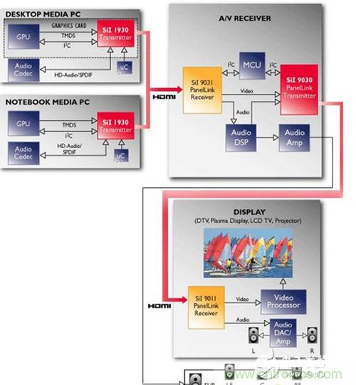 HDMI(High DefiniTIon MulTImedia)是在2002年由日立、松下、飛利浦、Silicon Image、索尼、湯姆遜、東芝共7家公司成立的HDMI組織制定的全新數(shù)字視頻/音頻傳輸標(biāo)準(zhǔn)。初始版本為HDMI 1.0,06年底繼而頒布1.3標(biāo)準(zhǔn),HDMI在針腳上與DVI兼容,只是封裝規(guī)格不同,但HDMI相較于DVI大幅增加了信道帶寬,輕松應(yīng)對(duì)目前高端市場(chǎng)高分辨率高刷新率帶來(lái)的數(shù)據(jù)傳輸壓力。