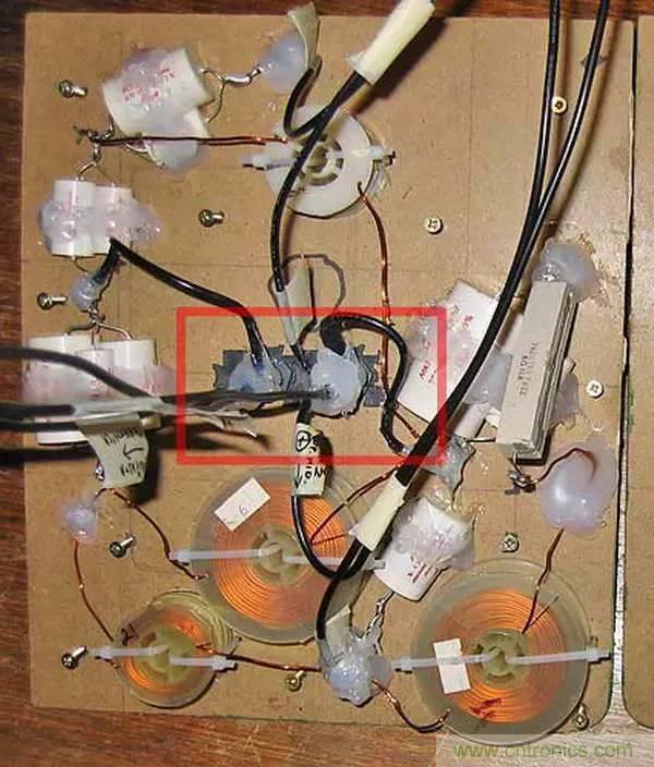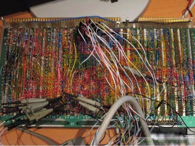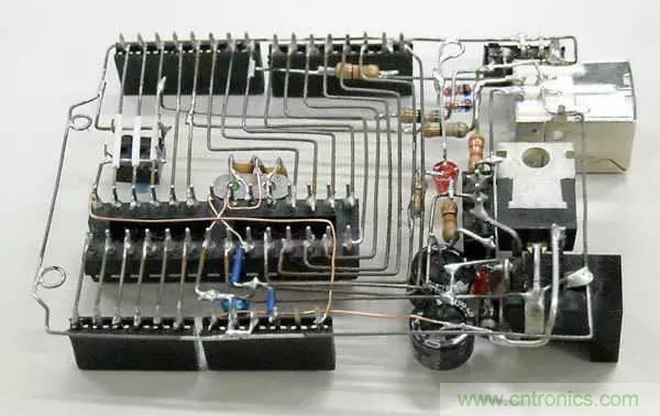 對于元器件在萬能板上的布局,大多數(shù)人習慣“順藤摸瓜”,就是以芯片等關鍵器件為中心,其他元器件見縫插針的方法。這種方法是邊焊接邊規(guī)劃,無序中體現(xiàn)著有序,效率較高。但由于初學者缺乏經(jīng)驗,搭出來的板是這樣的……