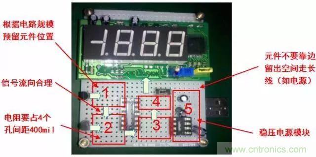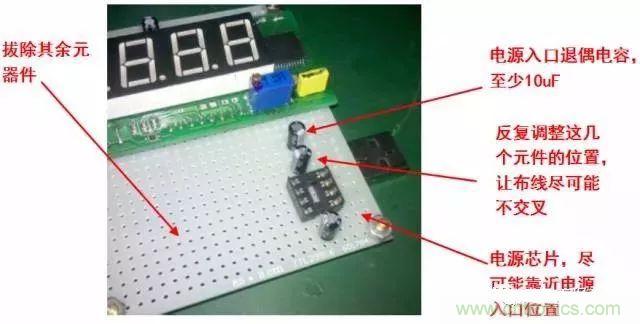 電源貫穿電路始終,合理的電源布局對簡化電路起到十分關鍵的作用。某些洞洞板布置有貫穿整塊板子的銅箔,應將其用作電源線和地線;如果無此類銅箔,你也需要對電源線、地線的布局有個初步的規(guī)劃。