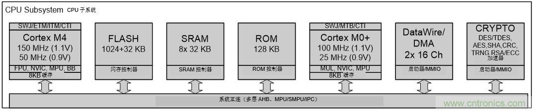 多核 MCU 可帶來許多其他益處。例如,它可以集成足夠的資源使 CPU 能夠并行處理密集型任務,從而充分發(fā)揮多任務處理的效率。這也使開發(fā)人員可以有效地將系統(tǒng)事件分配給特定的內(nèi)核,從而達到功耗和性能目標。再比如,在雙核可穿戴設計中,可以將需要較少 CPU 干預的周期性功能(例如無線廣播和觸摸感應)分配給一個內(nèi)核。其他“頻繁接觸”的功能,如需要 CPU 頻繁干預的傳感器融合等,可以分配給另一個內(nèi)核。當在系統(tǒng)中運行多個應用程序時,這種分區(qū)縮短了延遲時間。通過整合協(xié)議棧和程序存儲器的集成還可以提高效率。
