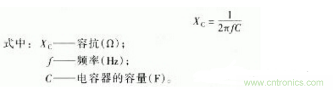 電容器對(duì)交流電有特殊的電阻特性,稱(chēng)為容抗。容抗可由下式算出,即