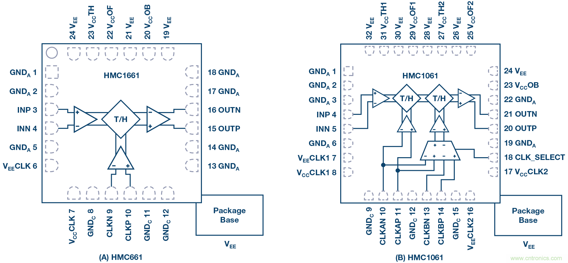 ADI的THA系列產(chǎn)品可以在18 GHz帶寬范圍內(nèi)提供精密信號(hào)采樣,在DC至超過(guò)10 GHz的輸入頻率范圍內(nèi)具有9到10位線(xiàn)性度、1.05 mV噪聲和< 70 fs的隨機(jī)孔徑抖動(dòng)性能。該器件可以4 GSPS工作,動(dòng)態(tài)范圍損失極小,具體型號(hào)包括HMC661 和 HMC1061。這些跟蹤保持 放大器可用于擴(kuò)展高速模數(shù)轉(zhuǎn)換和信號(hào)采集系統(tǒng)的帶寬和/或高頻線(xiàn)性度。