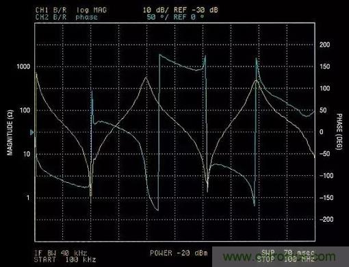 另外,無端接的傳輸線也是非常糟糕的負載,因為它們會帶來隨頻率而重復的“失控式”阻抗和相位變化 (見圖 7 中一根無端接 9 英尺電纜的阻抗)。