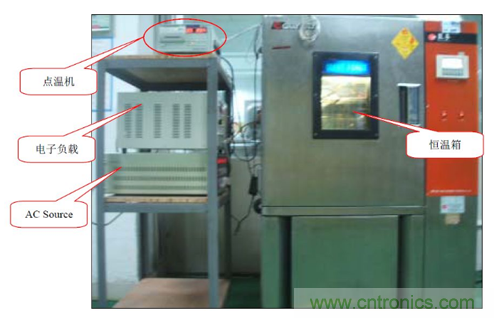 C.模擬電源終端應用狀況,對電源進行密封,并依電源負載條件對電源輸出端帶載,在所需求的環(huán)境下進行點溫測試.如下圖: