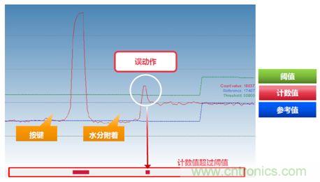 由于潮濕的表面,會(huì)增加電容量。即使在潮濕的表面,也能正確識別按鍵,從而避免了電容自感方式下的觸摸誤動(dòng)作。