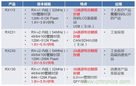 瑞薩電子提供4個(gè)產(chǎn)品系列,來適用于不同的應(yīng)場合,分別為RX113、RX130、RX230、RX231。