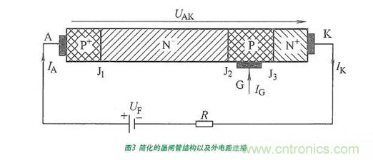 晶體管那樣有具體的名稱。這3個PN結(jié)可以通過合金—擴散法或全擴散法形成,陽極、陰極和門極電極分別通過金屬連接與對應(yīng)的半導(dǎo)體層相連接。