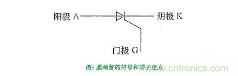 晶閘管也是一個三端器件,按照現(xiàn)有的應(yīng)用習(xí)慣,其三個端子定義為陽極(A,anode)、陰極(K,cathode)和門極(G,gate)。晶閘管的符號以及對應(yīng)三個端子的定義如圖1所示。