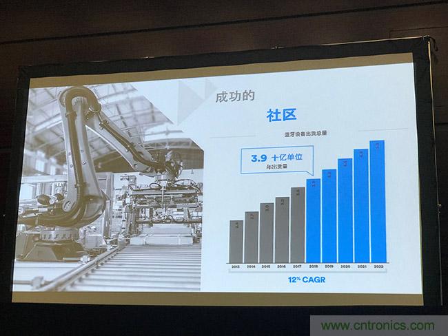 在汽車領(lǐng)域,藍牙將成為大部分新車的標配。2018年,所有新車中高達86%的新車將具備藍牙連接功能,藍牙無線傳感器系統(tǒng)能夠?qū)蓽y的信息和警報傳輸?shù)椒?wù)管理解決方案,從而簡化商業(yè)車隊及消費車輛的維護。預(yù)計到2022年,車用設(shè)備出貨量將增長4.5倍,與智能手機融為一體的職能車鑰匙將通過藍牙連接實現(xiàn)自動鎖定和解鎖檢測,自定義座椅設(shè)定,分享虛擬鑰匙的便利功能。
