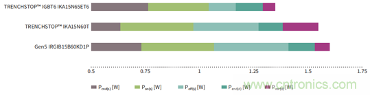 開(kāi)關(guān)損耗,這對(duì)于開(kāi)關(guān)頻率高達(dá)30 kHz的系統(tǒng)尤為重要。此外,為了降低總損耗,IGBT6的反并聯(lián)二極管采用恢復(fù)特性軟且快的Rapid 1 二極管。