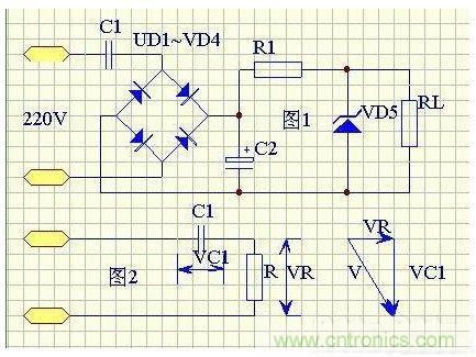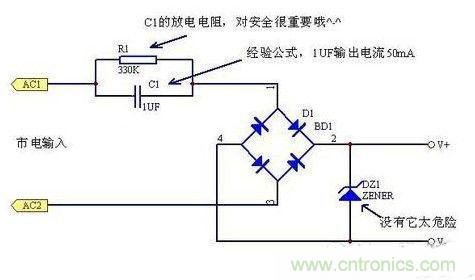 【導讀】將交流市電轉(zhuǎn)換為低壓直流的常規(guī)方法是采用變壓器降壓后再整流濾波,當受體積和成本等因素的限制時,最簡單實用的方法就是采用電容降壓式電源.