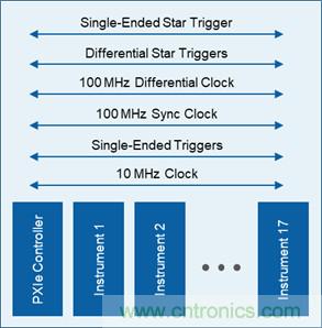 ● PXI Express保留了原始的PXI規(guī)范中的10 MHz背板時鐘,以及單端PXI觸發(fā)總線和長度匹配的PXI星形觸發(fā)信號。