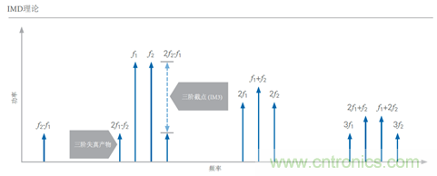 為了理解IMD,我們需要回顧一下非線性系統(tǒng)的多音信號理論。雖然單音激勵信號會在該信號頻率的每個倍數(shù)處產(chǎn)生諧波行為,但是多音信號產(chǎn)生的非線性產(chǎn)物需要在更寬的頻率范圍才會出現(xiàn)。