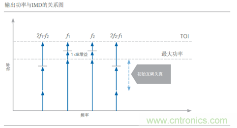 TOI是衡量射頻前端性能的重要指標,因為IMD比率取決于功率電平。TOI的測量將IMD性能的要素與絕對功率電平相結(jié)合,并通過一個數(shù)字來表示性能。