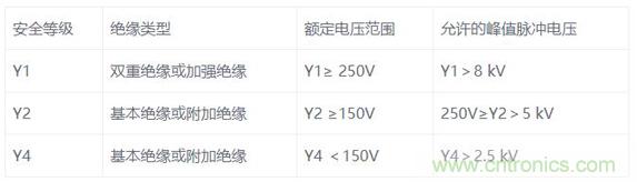 我們都知道Y電容是安規(guī)電容,是跨接L線地以及N線與地之間的電容,它的作用是抑制共模干擾。現在一共有三種等級,分別是是Y1, Y2, Y4。由于漏電流不能太大這是安規(guī)要求,漏電流太大人體觸摸用電器會有一種麻麻的感覺,因此一般Y電容容量大小為1nF到4.7nF之間。